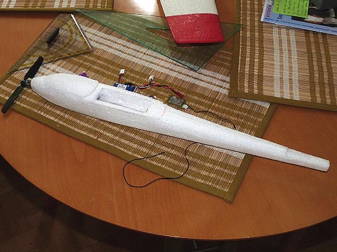 Die Baubilder des zweiten Blizzards zeigen etwas besser die Aushöhlaktion, Motor und Regler werden vor dem Schließen des Rumpfes eingesetzt bzw.-geklebt.