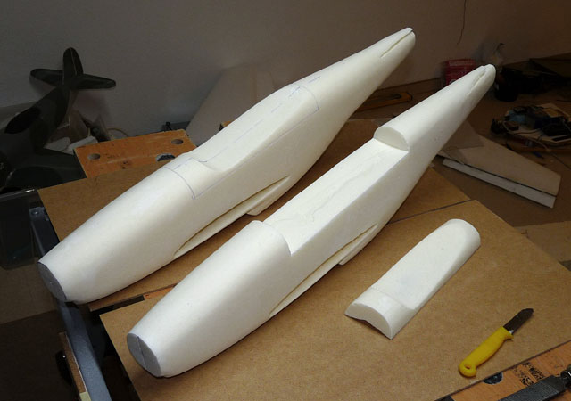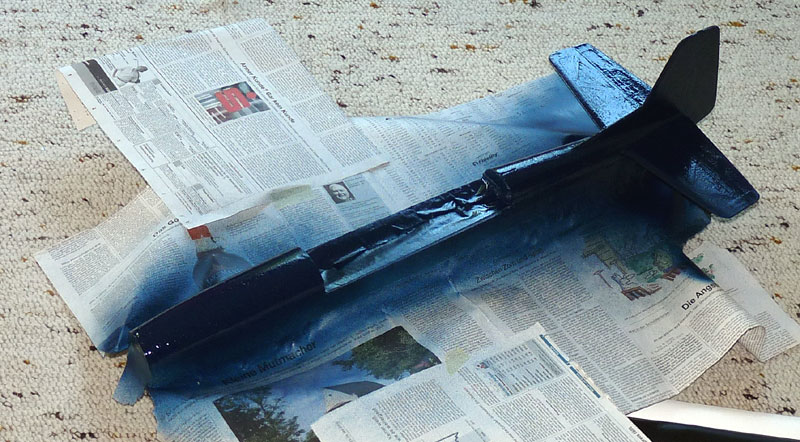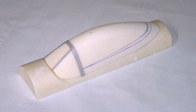 Die Haube ist ebenfalls aus Styrodur geformt, die Fensterstege aus Karton darüber geklebt. Schrumpfschlauch drüber und dann wird geschrumpft. Nicht besonders stabil, aber geht schnell und einige Modelle fliegen damit nun schon jahrelang.
