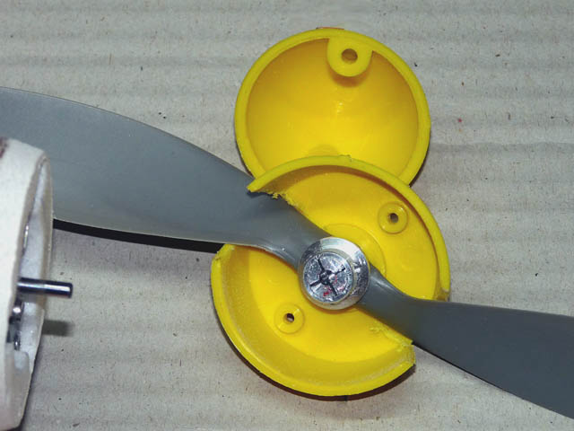 Der Spalt wird mit 4mm Depron gefüllt und verschliffen. Ok - es ist ein ziemlich billiger Plastik-Spinner für 1,60 EUR. Eigentlich viel zu billig für diesen Flieger. Aber seine elliptische Form passt gut zur Mustang. Wir werden ihn schleifen und rot lackieren (erster Hinweis auf die Farbgebung. Nein - es wird keine rote).