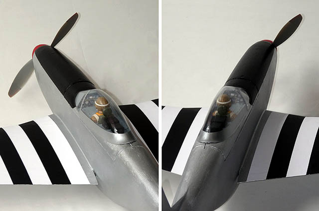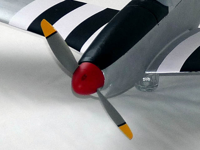 Roter Spinner, schwarzer Rücken, Invasionsstreifen, rote Randbögen und Seitenruder - der Rest ist das Felgensilber, da sehr leicht => es kamen gerade mal knappe 5g Gewichtszuwachs drauf.