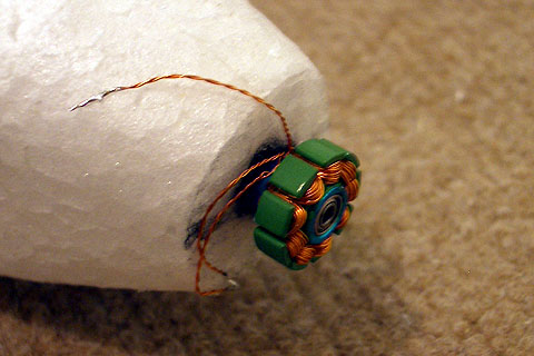 Der Motor kann nun in das Carbonrohr gesteckt werden. Damit er nicht wieder rauskommt, gglfs. mit UHUpor vor dem hineinstecken ein wenig verkleben. Empfehlung: Zuvor auf der Rückseite des Motors den Sprengring entfernen => so lässt sich die gesamte Motorglocke vorne herausziehen und der Motor besser in das Carbonrohr drücken bzw. später für einen einfacheren Prop-Wechsel wieder abziehen (keine Angst: im Flug kann sie die Glocke nicht ablösen - würde der Zug zu groß werden und die Glock nach vorne abziehen wollen, ließen die Kraft des Magnetismus und somit die Zugkraft nach).