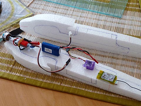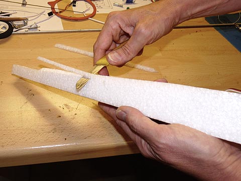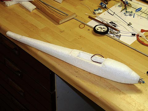 Die Baubilder des zweiten Blizzards zeigen etwas besser die Aushöhlaktion, Motor und Regler werden vor dem Schließen des Rumpfes eingesetzt bzw.-geklebt.